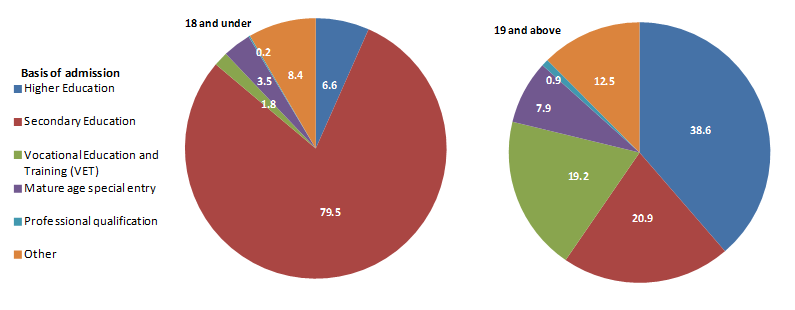 Figure 2: Basis of admission in 2011, domestic Australian students by age